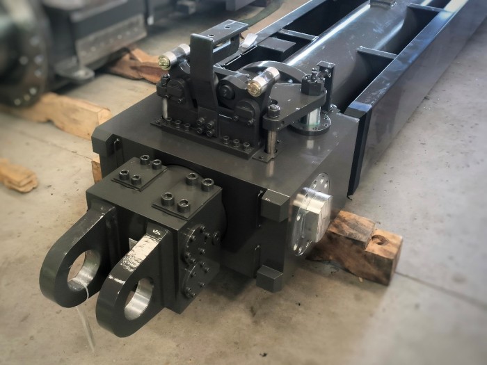 雙側(cè)銷插銷機(jī)構(gòu)伸縮油缸(600V8)在特力液壓公司完成試制,并經(jīng)測試合格,缸銷與臂銷運(yùn)行正常,動(dòng)作靈活,各項(xiàng)指標(biāo)符合設(shè)計(jì)要求,標(biāo)志著新一代雙側(cè)銷插銷機(jī)構(gòu)成功下線。